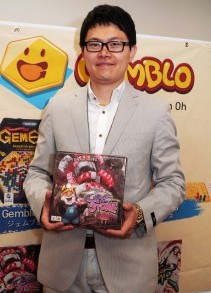 ![]() Gemblo代表のジャスティン・オー氏。韓国のボードゲーム産業協会議長を務めている。手に持っているのは新作「Gem Stone」 |