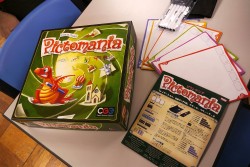 ![]() ホビージャパンブースから「Pictomania」。よく似た言葉を絵でかき分けるイラストゲームだ |