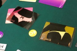 ![]() ドロッセルマイヤーズのブースにあった,俳句をひねるカードゲーム「Hyke」。パッケージが和風で実におしゃれ |