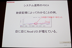 そのほか,興味深い質疑応答としては,ドラゴンコレクションで行われている「ランチタイムガチャ」について。これは文字どおりお昼時にガチャが引けるというもので,サーバーに相当な負荷がかかることが予想できる。そんなランチタイムガチャが想定内だったかという質問に対して,「最初は正気か? と思った」と廣田氏は回答。急遽サーバーを補強することで,サービス停止したのは1回だけだったという。