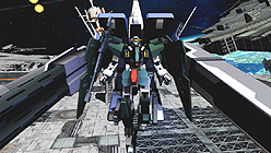 GNアーマーTYPE-D ガンダムデュナメスの強化形態。ガンダムデュナメスと強化支援機「GNアームズ」が合体した状態で、デュナメスの性能を強化パーツ装備によって向上させたものである。装備されている「GNツインライフル」やGNミサイルを多数搭載したコンテナ等によって火力が増強され、さらには強力な「GNフィールド」を展開することが可能であるなど攻守においてデュナメスを上回る性能を発揮する。 |
