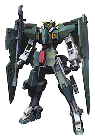 ソレスタルビーイングの遠距離支援型MS。第3世代ガンダムのひとつで、第2世代ガンダムの実働実験によって得られたデータを元に完成された実戦機。世界に5基しか稼動していないGNドライヴ(太陽炉)を搭載し、半永久的に生み出されるエネルギーによって各国でまだ実現されていないビーム兵器の携帯を可能にする等、現行のMSに比べ高い性能を持っている。