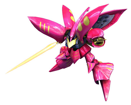 アクシズで開発されたNT専用MS「キュベレイ」を操縦者に合わせてカスタマイズした機体。機体内部にサイコミュを 搭載し、遠隔誘導兵器「ファンネル」によるオール・レンジ攻撃を得意とする。機体に搭載されたサイコミュ・コントローラーシステムによってMSを外から操縦することも出来る。未遂ではあったが、ハマーン暗殺という皮肉な使われ方をされた。