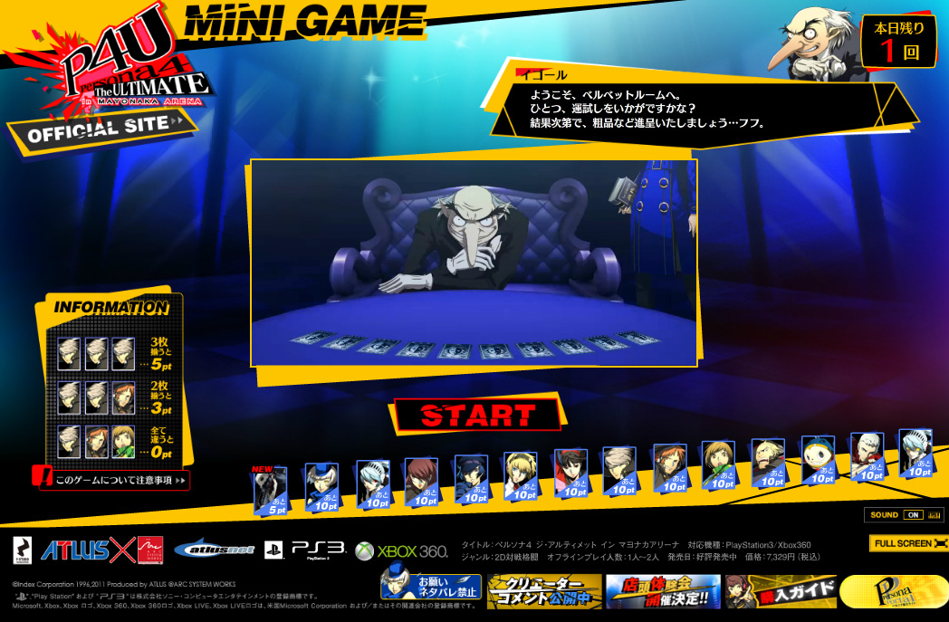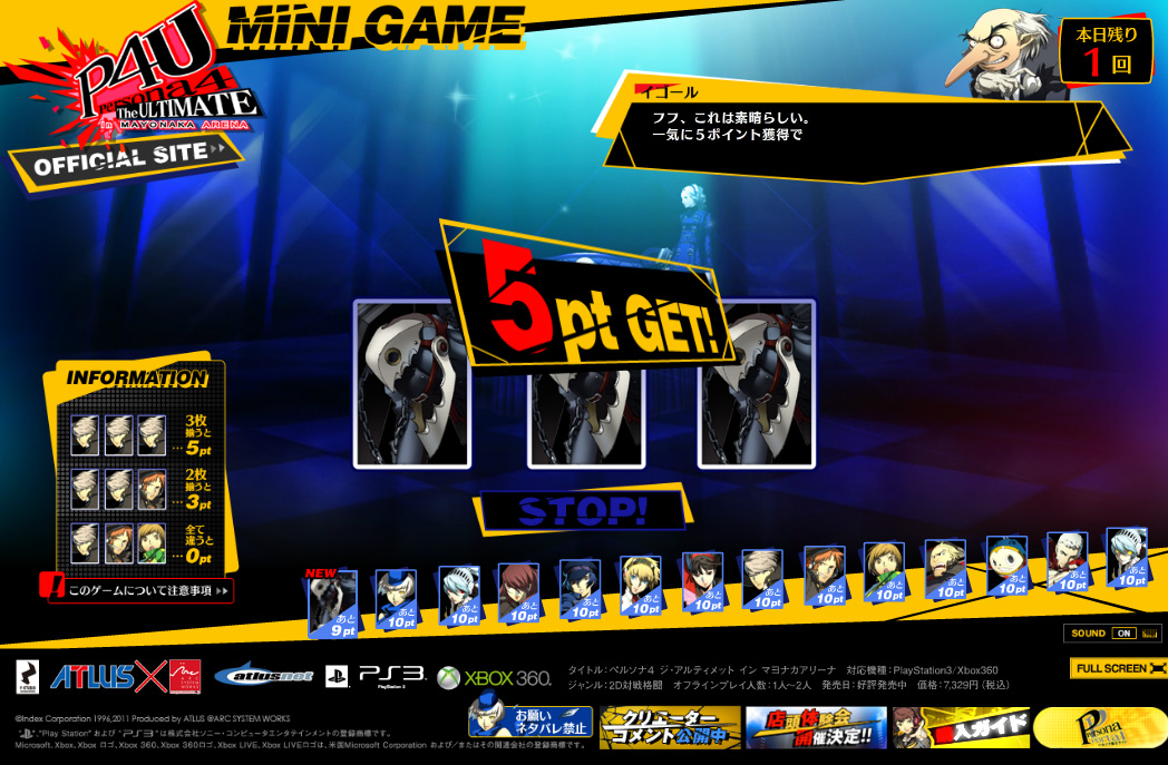 「P4U マヨナカアリーナ」公式サイトのミニゲームで手に入る壁紙を追加