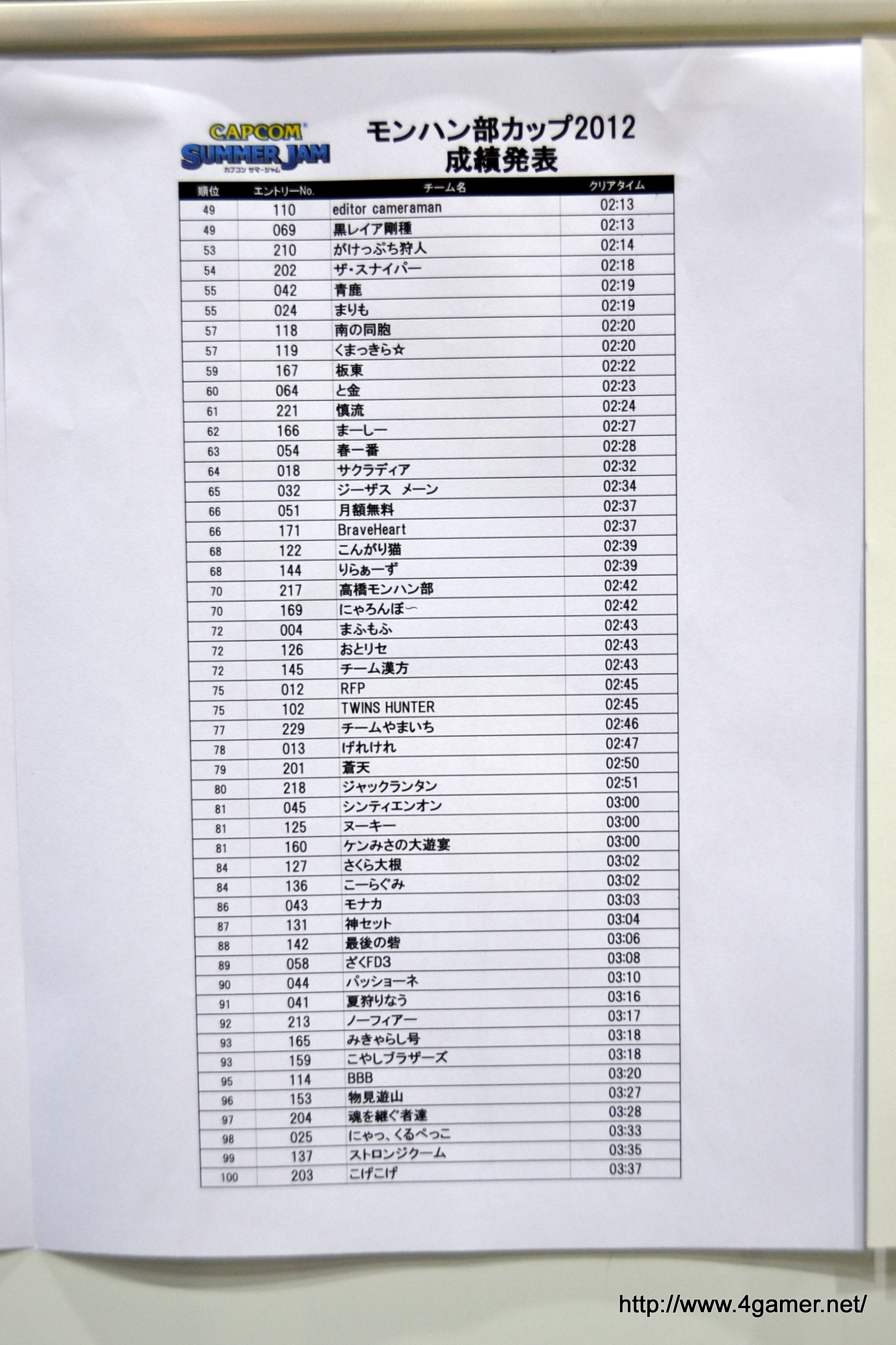 「モンスターハンター3(トライ)G」の最速ハンター決定――ラギアクルス亜種/リオレウス亜種/ブラキディオス大連続狩猟の最速クリアタイムは4分4秒!