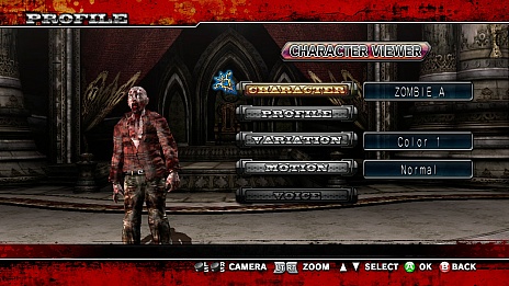 ストーリーモードをクリアすると出現するモード、キャラクタをじっくり眺めたり、ゲームサウンドを聞くことができます。