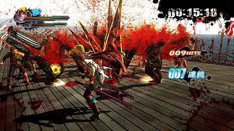 2011年12月2日に掲載した記事で紹介した「ニルヴァーナ」を使って,三つまで装備可能とのこと。ここでは「ヘヴィウエイブ」と「ファントムエッジ」,そして「ヴォルケーノ」がスクリーンショット付きで紹介されている。相変わらず,血しぶきいっぱいだ。