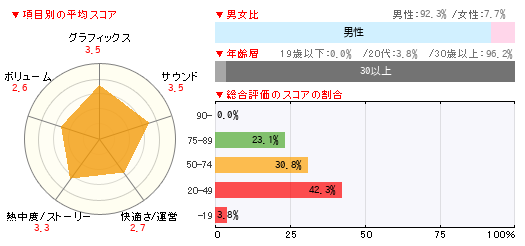 グラフィックス サウンド 快適さ/運営 熱中度/ストーリー ボリューム 3 4 4 2 2 -