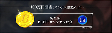 キャンペーン期間中に『BLESS』のストーリーに関するクイズに答えると、正解した方の中から抽選で1名の方に100万円相当の純金製『BLESS』オリジナル金貨が当たります。