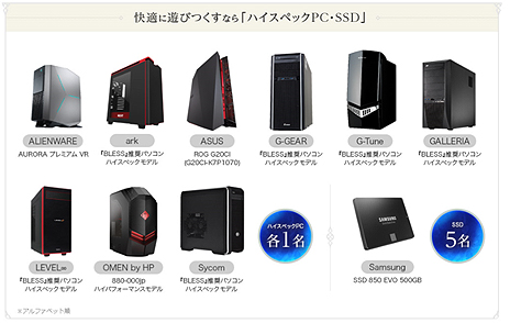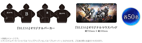 そのほか、『BLESS』が快適にプレイできるハイスペックパソコンや周辺機器、 『BLESS』オリジナルグッズのパーカーやマウスパッドなど盛りだくさんの賞品ラインナップになっております。