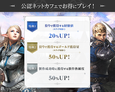 経験値アップや制作熟練度アップなど特典が受けられる公認ネットカフェが登場いたしました。ぜひお近くのネットカフェでプレイしてみてください。