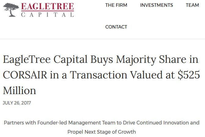 米国の投資会社がCorsairを約5億2500万ドルで買収。ゲーマー向け製品に注力する路線は今後も継承とのこと
