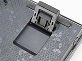 なお,奥側の高さと全体の傾斜角は,2段式のチルトスタンドで調節できる。ファンクションキー列の高さで言うと,小さいスタンドを立てた状態で約30mm,大きいスタンドでは約38mmまで持ち上がった。きつめの傾斜まで調節できるので,好みに応じた設定が可能だろう。