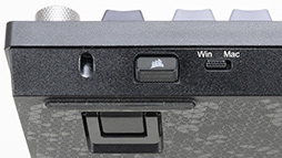 デザインや質感は,Corsairらしく高品質なものだ。耐久性に優れるPBT(ポリエチレンテレフタレート)を使用した二重射出成形のキーキャップを採用しており,キーキャップをグレーと黒のツートーンカラーとすることで,落ち着いたルックスを実現している。
