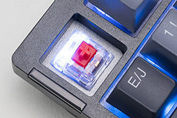 ポピュラーなCherry製MX Redスイッチとの違いは,アクチュエーションポイントの深さ程度だが,MX Redも約2mmというスペックなのでほとんど変わらない。ただ,耐久性はMX Redの5000万回に対して,MLX Redは7000万回を謳っている。実用上の違いはあまりないものの,MLX Redのほうが高耐久という点は多少の安心感につながるだろう。