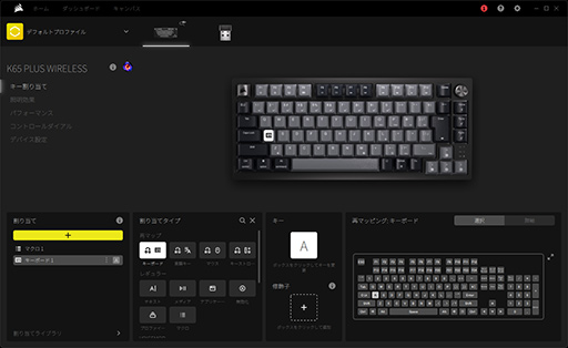 ここまででも軽く触れてきたように,K65 PLUS WIRELESSはCorsair製ゲーマー向けデバイスの統合設定ツール「iCUE」を使って,さまざまな要素をカスタマイズできるのが特徴だ。ただ,iCUEは4Gamerでも過去に繰り返し取り上げており,既存製品と大きく違うわけではない。そのため本稿では,K65 PLUS WIRELESSの特徴に関わる点を取り上げたい。