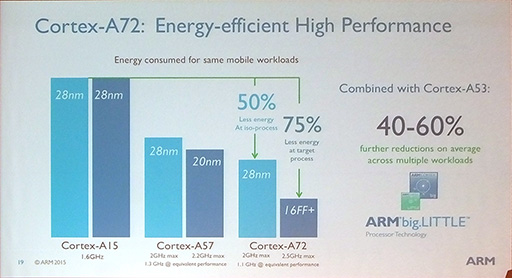 ARMの新型64bit CPU「Cortex-A72」はXeon並みの性能を3分の1の消費電力で実現。ARM Tech Symposia 2015レポート
