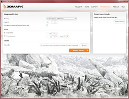 たとえば「TESTS」タブでは,3つ用意されたテストスイートを個別に実行するとか,「CUSTOM」タブでは解像度やアンチエイリアシングなどなど,テストにあたっての個別設定を変更するといったことができるようになっている。