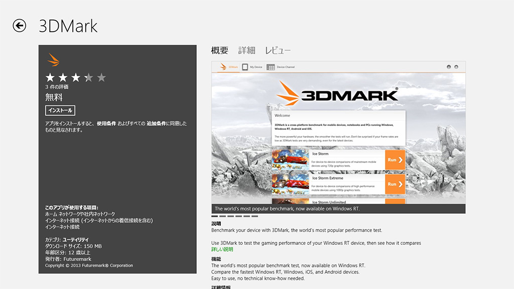 Windows RT用の「3DMark」が公開。Android,iOSと合わせてタブレット,スマートフォンでの3D性能テスト環境が整う