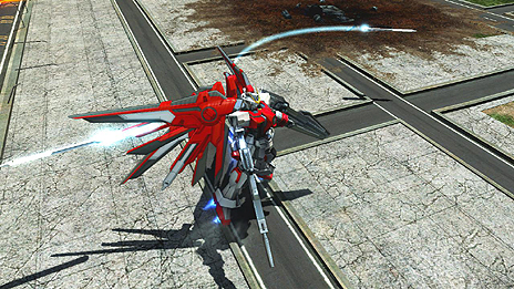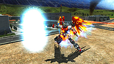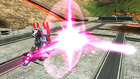 右手のヴァリアブル・ライフルから標準的な出力のビームを放つ。