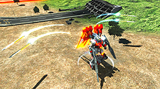 GAデータから読み取った戦技データによる自動攻撃。回転するビーム・サーベルへと巻き込んだ後、相手の上に乗って地面へ叩きつける。