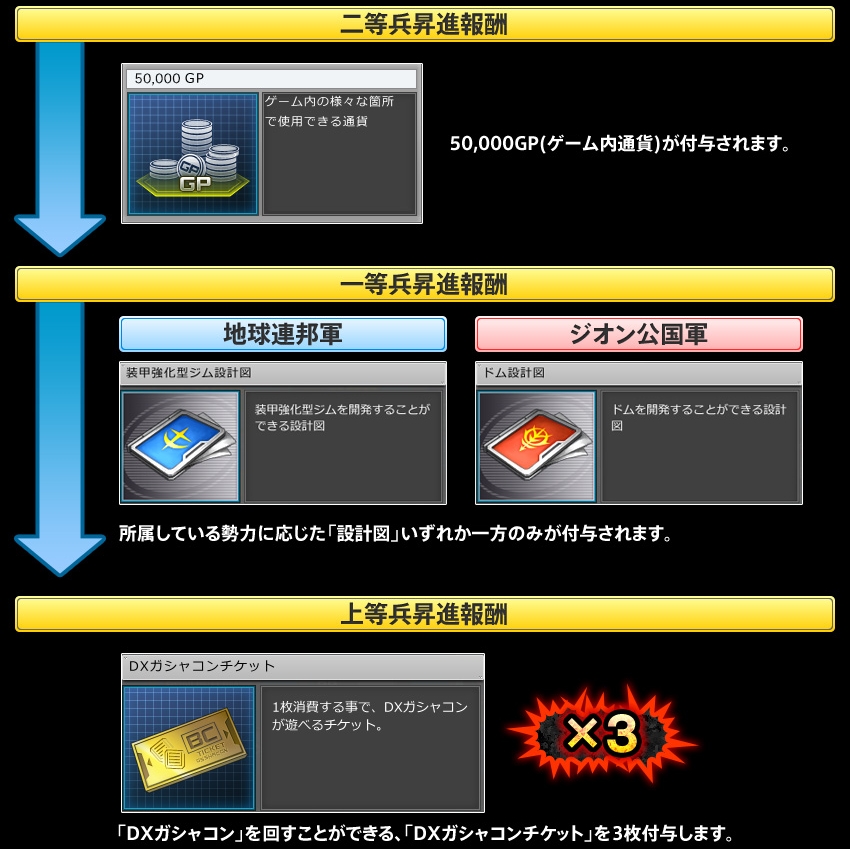 「ガンダム オンライン」期間中に特定の階級に昇進してアイテムをもらおう