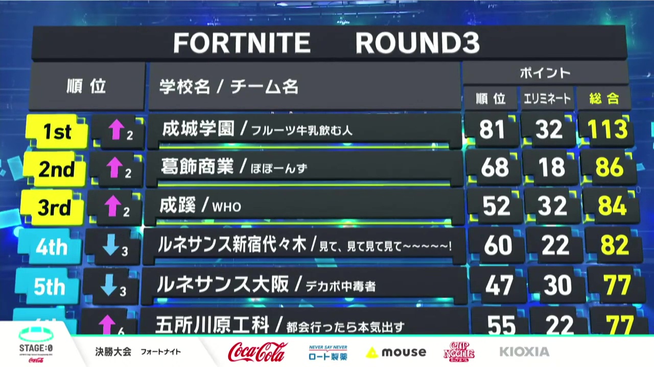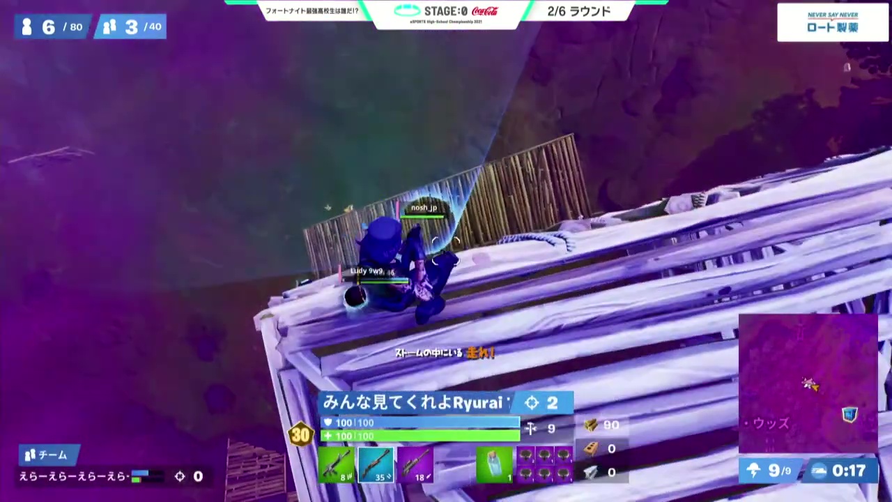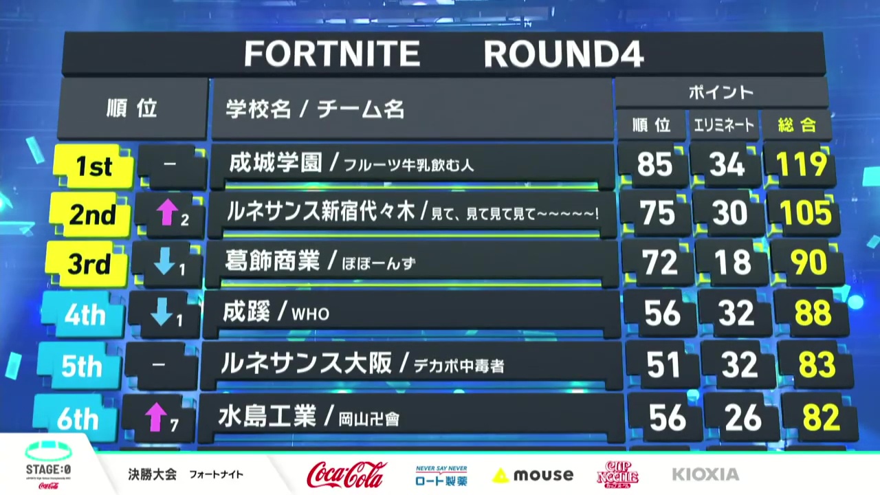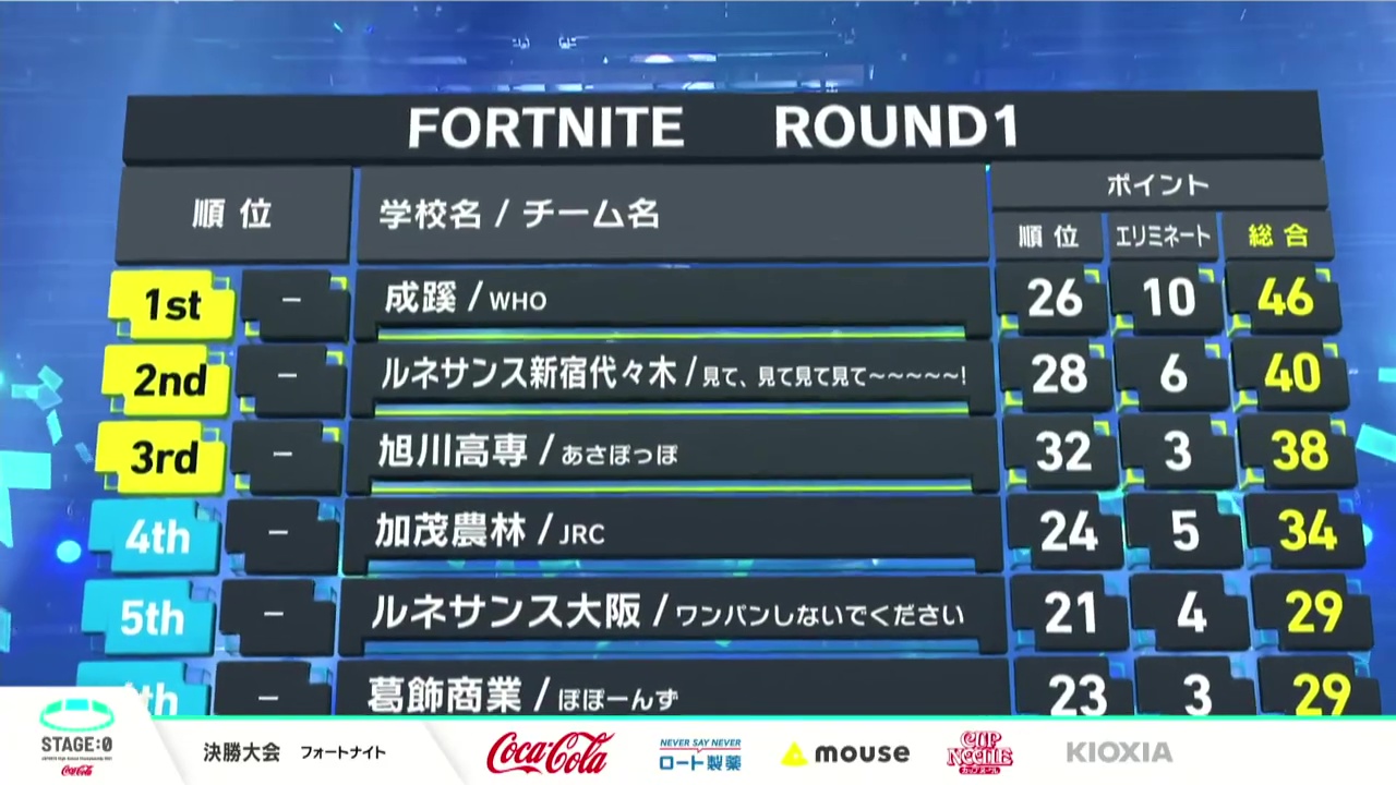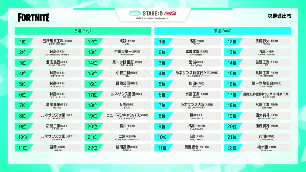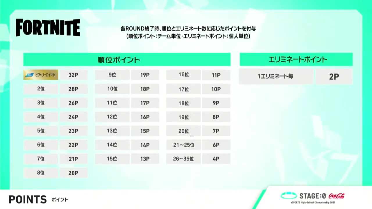 「STAGE:0 2021」の「フォートナイト」部門決勝は,40チームによる6ラウンドの激戦が展開。ルネサンス新宿代々木が優勝を飾る