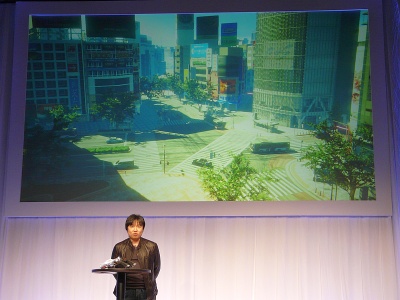ゲームの舞台となるステージは,実際の街並みを再現したものになるという。「本物の日本の主要都市を舞台に,派手にドンパチ楽しめる」とのことで,今回は発表会の開場のある渋谷の街並みが紹介されたが,例えば東京なら池袋,大阪なら道頓堀や梅田といった,北は北海道から南は九州・沖縄まで,多くの都市が登場する予定とのことである。