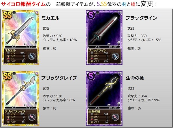 「魔法少女まどか☆マギカ オンライン」,サイコロ報酬タイムのアイテムがSS/Sランクの武器に