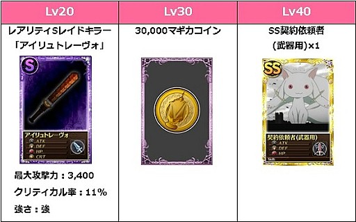 ●レベルアップ報酬