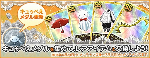 6月24日(火)より、「イベントクエスト」の更新を実施いたしました。イベントクエスト更新に合わせて、キュゥべえメダルで交換できるアイテムラインナップも更新!この機会に、新しいアイテムを手に入れよう!