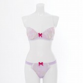繊細なスカラップレースが印象的なブラジャー&ショーツ。フロントには桜がつけている髪飾りをイメージしたピンクのリボンをデザインしました。桜の上品で可愛らしいイメージにピッタリです。
