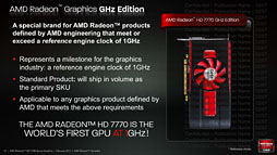 これは何かというと,文字どおり,動作クロックが1GHzに達した,という意味である。AMDはHD 7770で,グラフィックスカードのリファレンスクロックとして世界で初めて1GHzに達したことを強くアピールしているので,それがGPU名にも反映された結果が,今回のGHz Edition表記ということになりそうである。