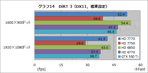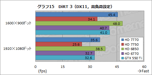3D性能検証で最後となるのが,グラフ14,15に示した「DiRT 3」だ。