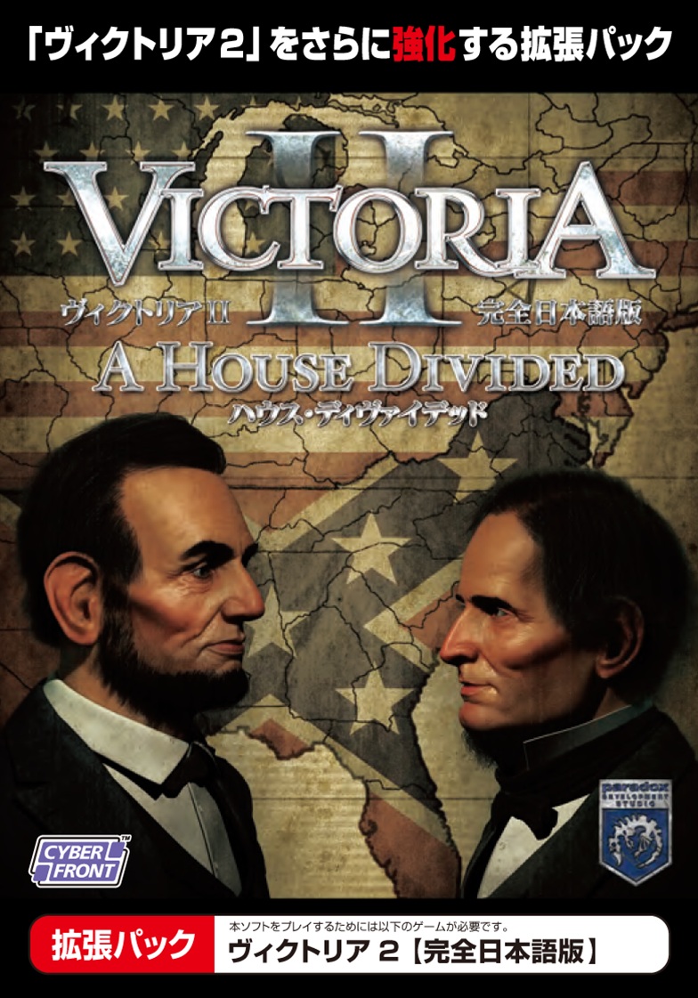 サイバーフロントは本日(2012年2月20日),PC向けストラテジーゲーム「ヴィクトリア2【完全日本語版】」の拡張パック,「ヴィクトリア2 ハウス・ディヴァイデッド【完全日本語版】」を4月6日に発売すると発表した。価格は4200円(税込)。本編と拡張パックがセットになった,「ヴィクトリア2 WITH ハウス・ディヴァイデッド【完全日本語版】」も同日発売される。