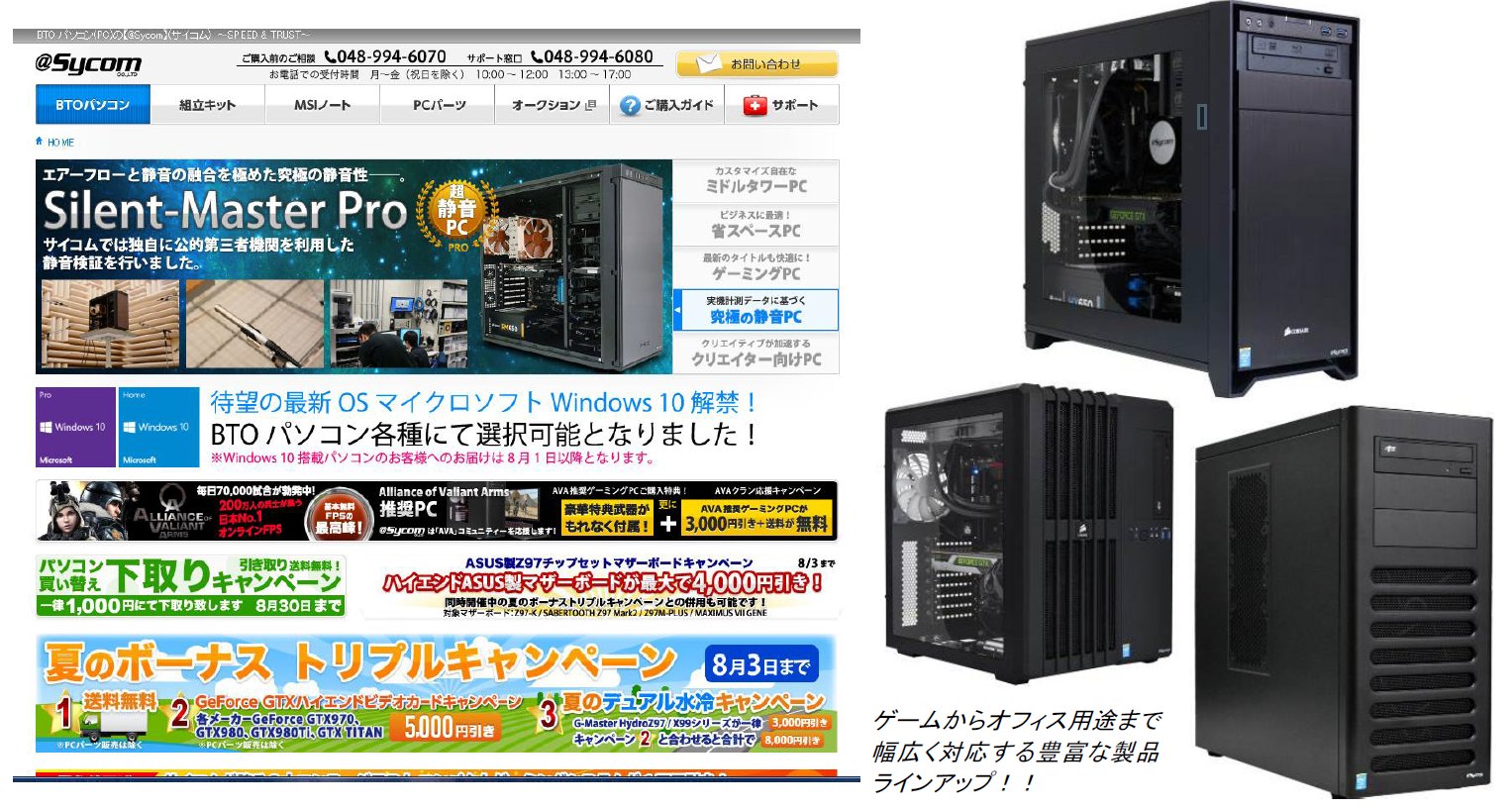 サイコム,Windows 10プリインストール版ゲームPCの受注を開始