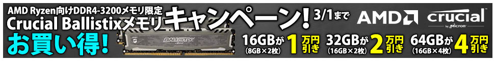 サイコム,BTO PCのメモリ割引キャンペーン。32GB搭載が2万円引き