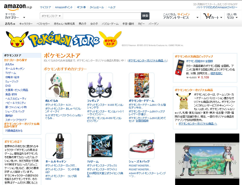 等身大ピカチュウを含めてポケモン関連商品が1万点以上。ポケモン,Amazon.co.jpに「ポケモンストア」をオープン