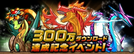 ガンホー・オンライン・エンターテイメント株式会社(本社:東京都千代田区、代表取締役社長 CEO 森下一喜、以下ガンホー)は、「iOS」および「Android」端末向けにサービス中のパズルRPG『パズル&ドラゴンズ』(http://www.gungho.jp/pad/)が、2012年11月5日(月)に累計ダウンロード数300万(※)を達成したことを発表いたします。