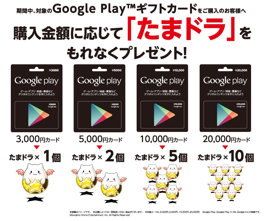「パズドラ」Google Play ギフトカードを購入すると“たまドラ”がもらえるキャンペーンを1月12日より全国のセブン-イレブンで実施