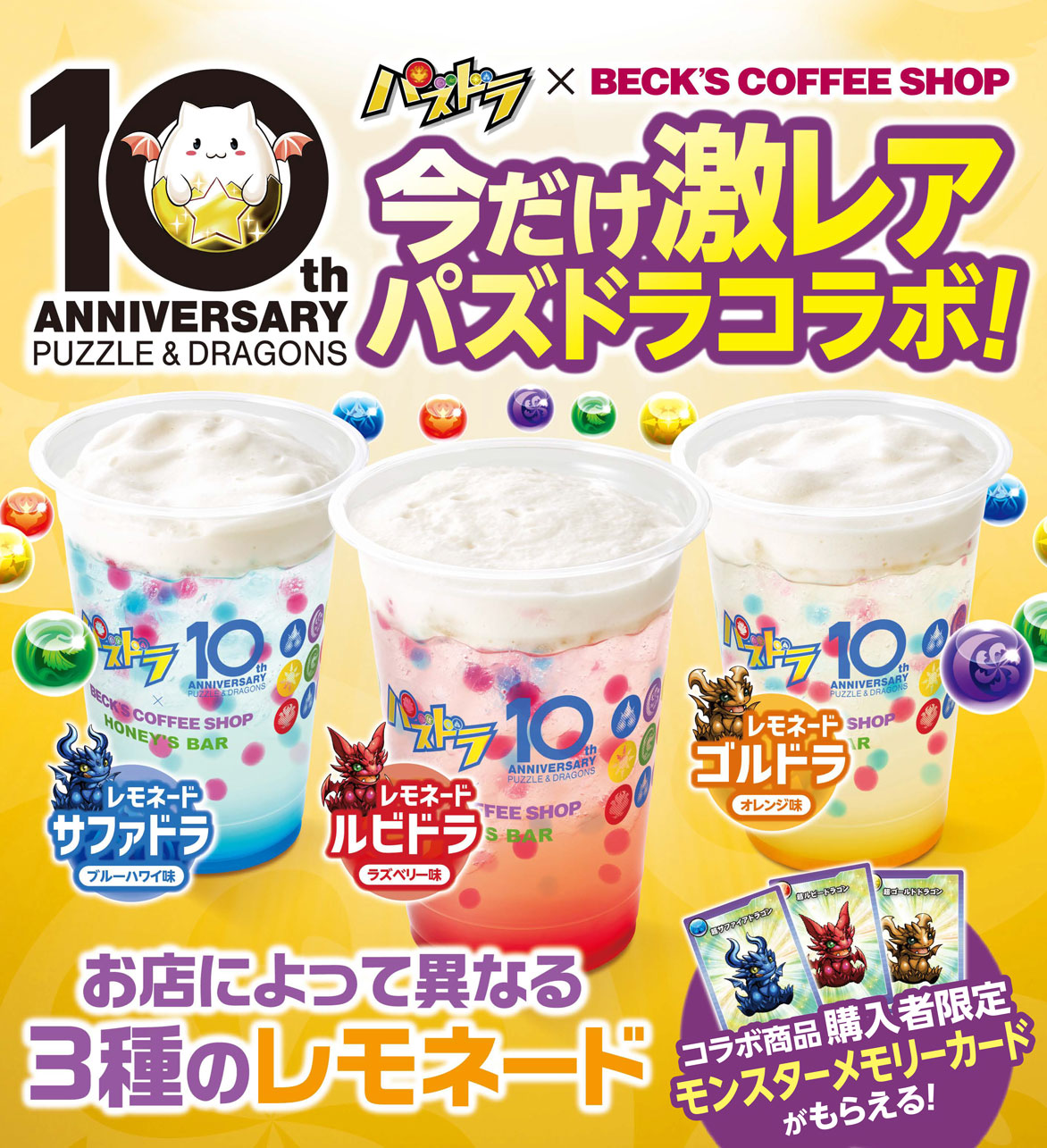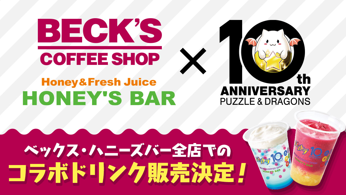 「パズル&ドラゴンズ」,「BECK'S COFFEE SHOP」と「HONEY'S BAR」にコラボドリンクが登場