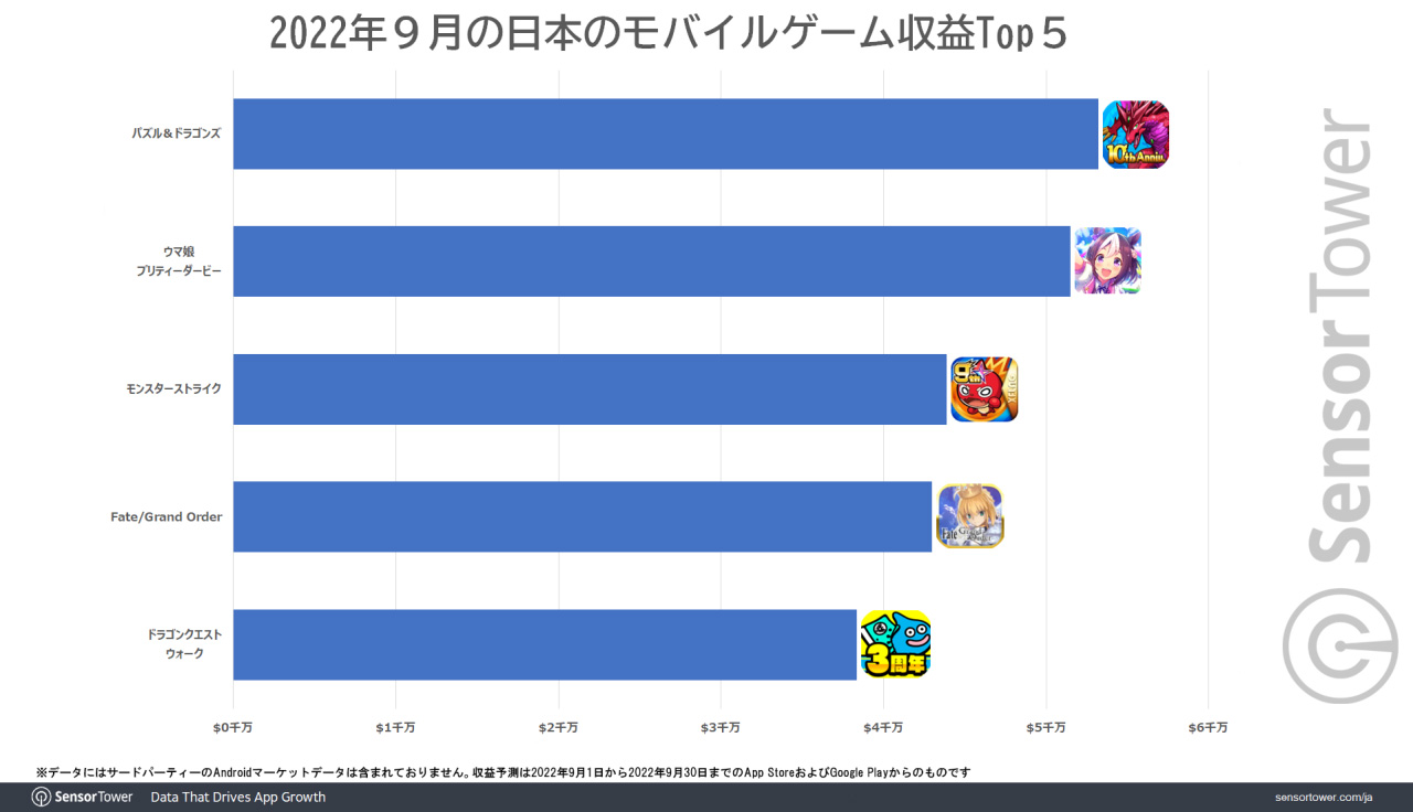 10周年を迎えた「パズドラ」,日本における9月のモバイルゲーム収益はトップとなる5300万ドル超えを記録。Sensor Towerブログ最新エントリ