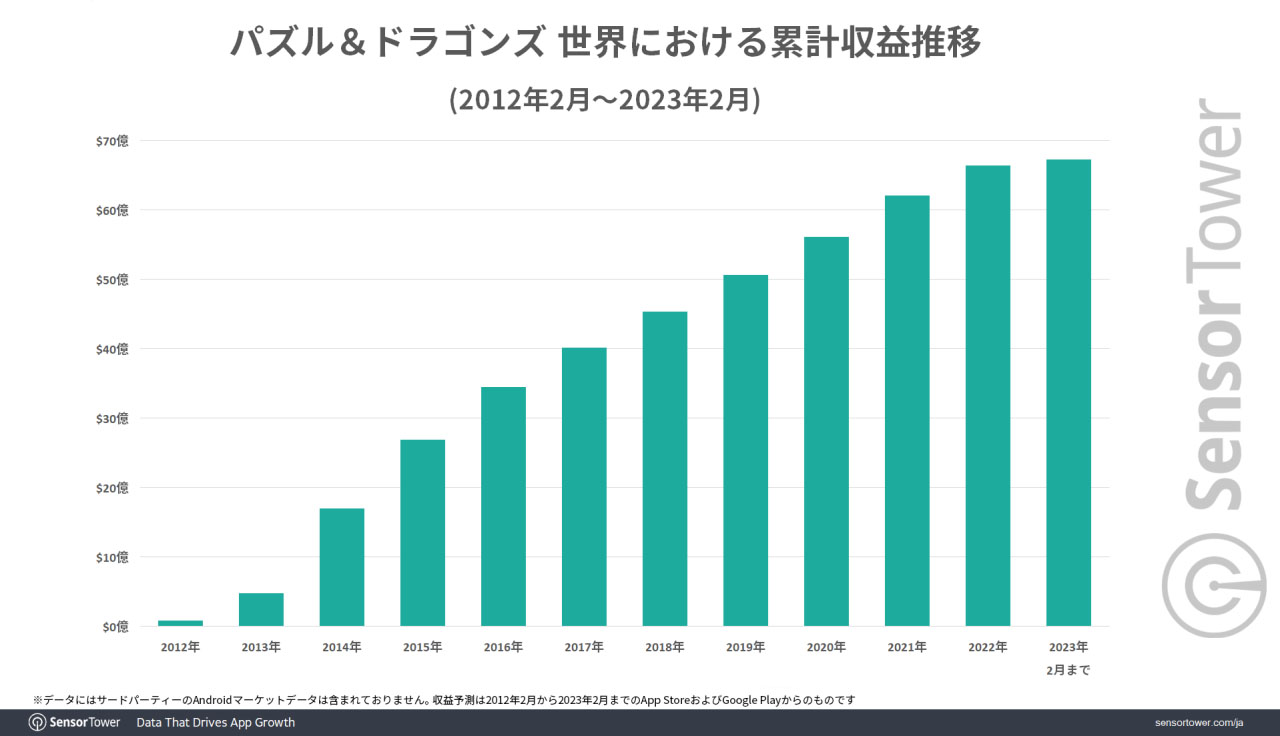 「パズル&ドラゴンズ」,全世界における累計収益が67億ドルを突破。Sensor Towerのブログ最新エントリーでレポートを公開