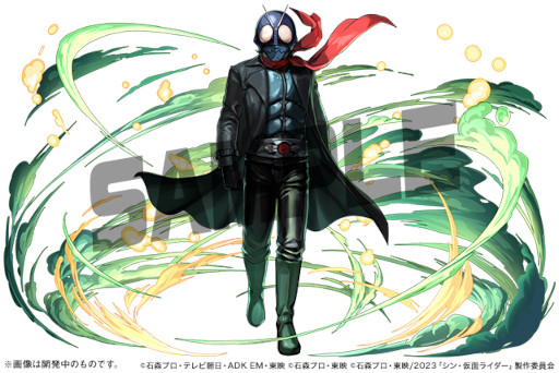 本コラボは,映画「シン・仮面ライダー」の公開を記念するもので,「仮面ライダー(コート)fromシン・仮面ライダー」や「仮面ライダー第2号(コート)fromシン・仮面ライダー」など映画に登場するライダーたちが登場する。これにあわせて,「仮面ライダーカブト ライダーフォーム」と「仮面ライダーディケイド」も登場するとのことだ。