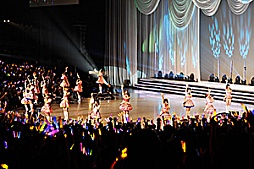 人数が重要なわけではないが,両日とも15人のシンデレラが一堂に会する今回のライブ,これまでは2013年4月10日に東京・池袋のサンシャインシティ噴水広場で行われた「お願い!シンデレラ」発売記念イベントと,上記「THE IDOLM@STER M@STERS OF IDOL WORLD!!2014」2日めに参加した11人が過去最大だったので,さすがは初の単独ライブという雰囲気だ。