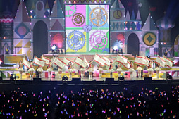 文章で説明するのは難しいのだけど,ステージは西洋風のお城をモチーフにした大きなもので,ディスプレイが壁面のあちこちに仕掛けられていて,楽曲に合わせて映像が流れるという仕掛けだ。年を追うごとにステージが凝ったものになっていくような気がするが,おそらくこれは,ほかの公演でも使われることになるのだろう。持ち運び,大変そう。