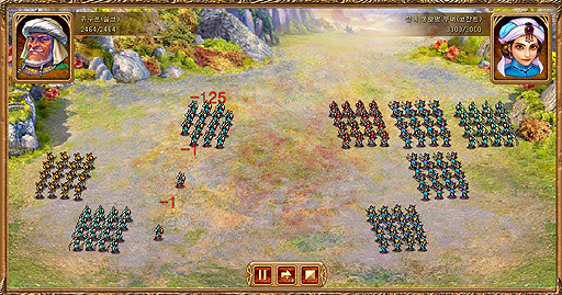 本作における戦争は,英雄とその部隊で陣を組んで戦うシミュレーションゲームの形式が採られおり,戦争には「拡張戦」と「拠点戦」の2種類があるという。