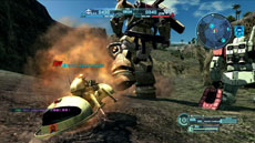 戦友とのチームワークで敵軍を撃破せよ! 新アクション「グラップル」により迫力のMS戦が展開! パイロットによる対MS戦や白兵戦も展開される! ワッパをはじめとした戦闘車両で応戦することも可能!
