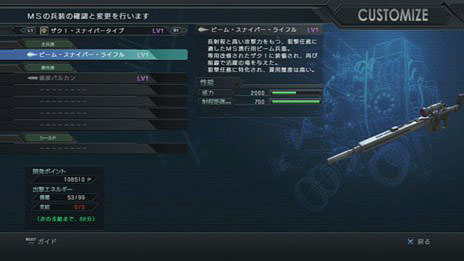 戦闘に参加して得た開発ポイントでMSを開発
