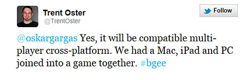 開発を手がけるOverhaul Gamesのトレント・オスター(Trent Oster)氏は以前,Baldur's Gate: Enhanced EditionをiPad向けにリリースすると発言しており,タッチインタフェースで,往年の名作がどのように楽しめるのかも気になるところだ。また,オスター氏のTwitterでの発言によると,Baldur's Gate: Enhanced Editionは,PC,Mac,そしてiPadでリリースされ,クロスプラットフォームでCo-opモードを楽しめるとのこと。